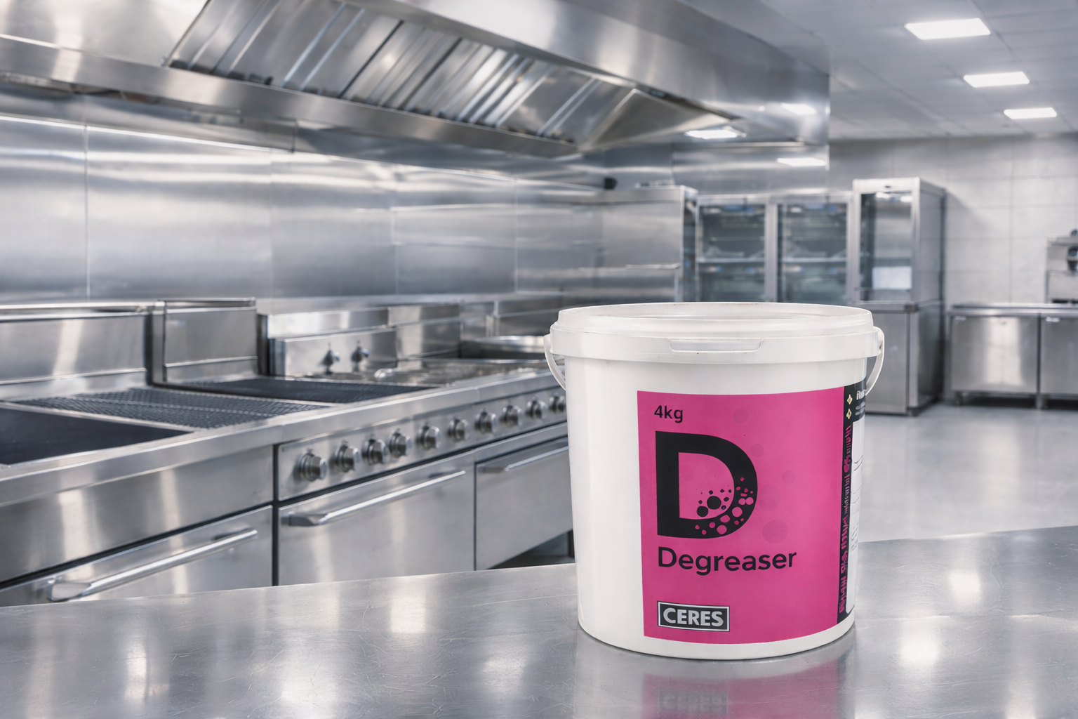 Keep your stainless steel extraction canopies grease-free with a weekly wash using a solution of 500g Ceres Heavy-Duty Degreaser in 5 litres of warm water. Rinse thoroughly afterwards to reveal the brilliant shine. Please avoid using it on aluminium surfaces.